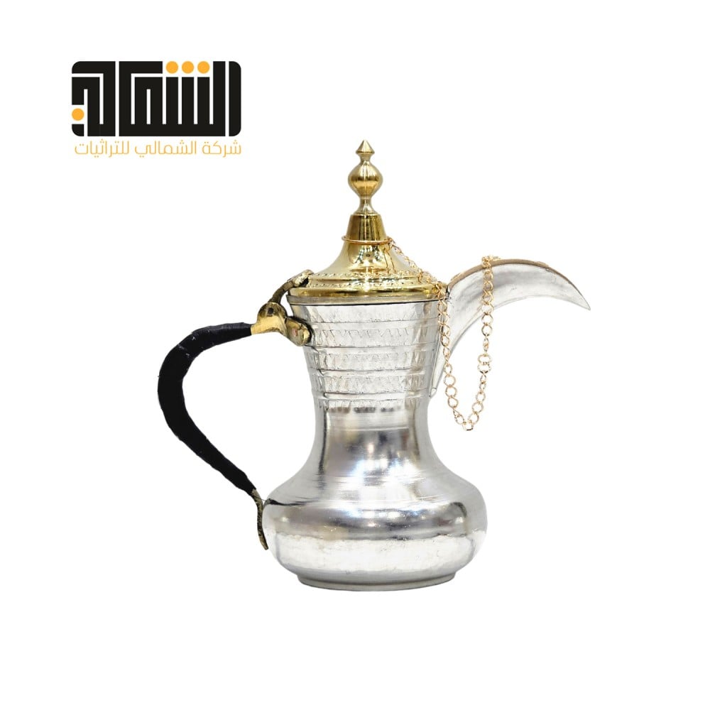 طقم دلال قريشي مصنوع من النحاس الأصلي باللون الفضي، يضم 5 قطع رائعة تضيف لمسة من التراث والتميز لمجلسك. تصميم فاخر يحافظ على الحرارة، مثالي لتقديم القهوة العربية.